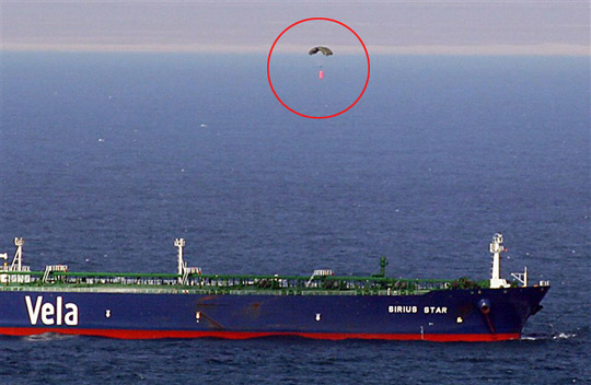 2008年11月15日,索馬里海盜劫持了沙特超大油輪“天狼星號”,并扣押23名不同國籍的船員作為人質,勒索的贖金達到350萬美元。無奈之下,“天狼星號”用直升飛機于2009年1月9日傘降贖金,這一幕也被美國海軍拍了下來。據一些媒體報道,后來海盜因為分贓不均發生爭執,造成乘坐的小船傾覆,多人死亡。為了一探事情的究竟,CNN聯系了一名生還的海盜。