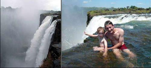 維多利亞瀑布類(lèi)似這樣的天然泳池至少有兩個(gè),魔鬼游泳池是其中之一,游客一旦來(lái)到這兒,就能盡情享受居高臨下、險(xiǎn)象環(huán)生的快感。來(lái)自西雅圖的軟件工程師斯圖格仁偕妻子安杰拉來(lái)這兒歡度結(jié)婚1周年。