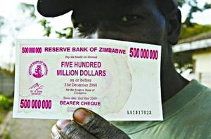 津巴布韋中央銀行行長吉登·哥諾在16日對總統(tǒng)穆加貝的匯報中提到,“中央統(tǒng)計辦公室提供的數(shù)據(jù)表明,現(xiàn)今的通貨膨脹率已達到2200000%。”據(jù)悉,這是津官方自今年2月以來首次公布通貨膨脹率。2月份該國的通脹率達到165000%,如今通脹高達2200000%,無疑成為當(dāng)今世界通貨膨脹最高的國家。