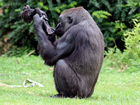 11歲的母猩猩加納上周六在猩猩園里抱著她已夭折的三個月大的兒子克勞迪奧,她將失去生命跡象的小猩猩舉起,目光里流露出震驚和不解,她無法接受她的孩子已死亡的事實。母猩猩所表現出來的不可抑制的痛苦與任何一位失去孩子的母親所感受到的悲痛非常相似。盡管自然界有它的殘酷性,但加納和她兒子克勞迪奧打動人心的場景看起來表明,動物王國的成員也能像人類一樣感受到失去親人的痛苦。