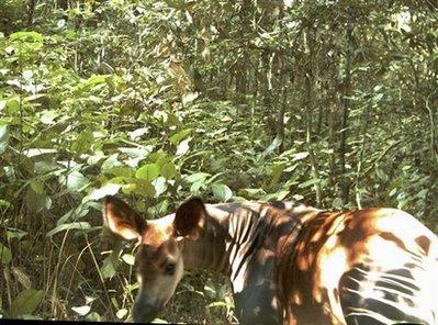 中新網(wǎng)9月12日電 綜合報道,倫敦動物學會11日發(fā)布了在非洲剛果國家公園叢林內(nèi)裝設(shè)的隱藏相機首度拍攝到的額頭中央突起類似獨角的非洲鹿(okapi)照片,具有鹿和長頸鹿的特征,紋路卻像斑馬。