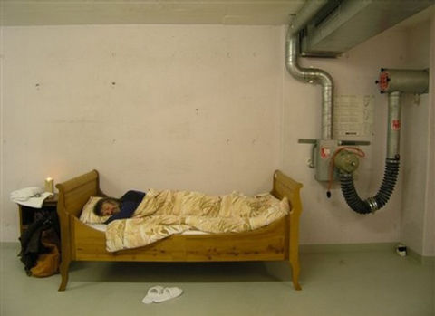 這些地下室都有錯綜復(fù)雜的管道分布。住客們一起居住在裝置有大型管道和電管的房間里,通常一個房間可住多名住客。