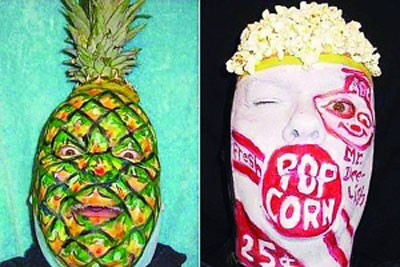 據(jù)報(bào)道,從今年3月開始,詹姆斯每天都喜歡用油彩往自己臉上畫一幅不同的畫,這些畫都畫得非常逼真。當(dāng)他往臉上畫一個菠蘿時,很多人乍一看還真以為他腦袋上長出了一個菠蘿。詹姆斯稱,他是看到有些人每天都為自己拍攝一張照片后,才有了這個想法的,“臉色天天變,那將是一件多么有趣的事!