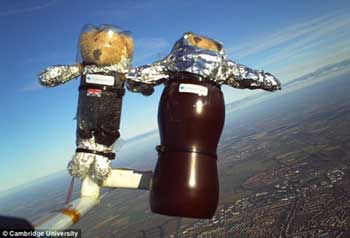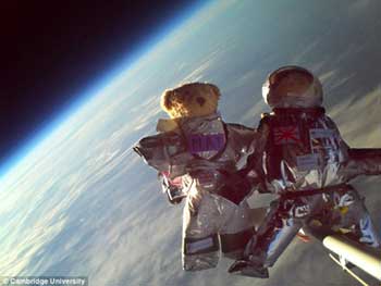 日前,一群英國學生將四只泰迪熊成功送到太空中,玩了一把“玩具熊太空行走”。