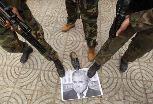 周日在布什同馬利基聯合舉行的新聞發布會上,扎伊迪脫下自己的鞋子,怒向布什砸去,同時用阿拉伯語大喊,“這是臨別之吻,你這禽獸。這是孤兒寡婦以及在伊拉克喪生的人送給你的!”扎伊迪隨后被安全人員按倒在地,帶離了會場。