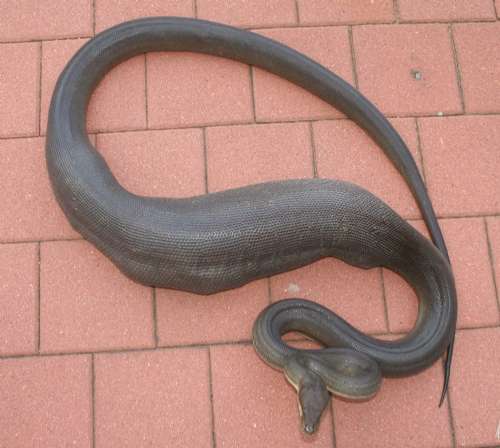 邦坦發(fā)現(xiàn)的是一條巴布亞蟒,約有10呎長,它的腹部隆起,體重約有35磅。通常這種蛇的體重約為21磅左右,這意味著它吞下了14磅重的獵物,相當(dāng)于賓迪的大小。這條蛇是在邦坦家中后園被發(fā)現(xiàn),而賓迪亦在它出現(xiàn)時(shí)失了蹤。