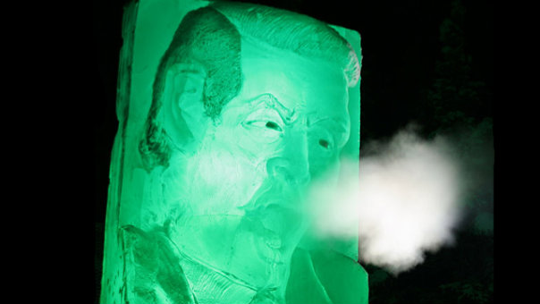 中新網(wǎng)1月7日電 據(jù)美國媒體報道,一座重達(dá)兩噸的美國前副總統(tǒng)戈?duì)柕谋裣袢涨俺霈F(xiàn)在美國阿拉斯加州菲爾班克斯市的一家酒館門前。冰雕中的戈?duì)柨磥砩袂槟,嘴中還向外噴著寒氣,臉上的表情仿佛是在大聲疾呼全球變暖的危害。