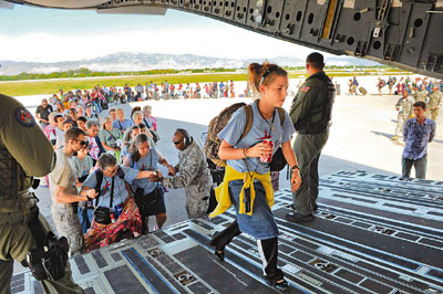 中新網1月18日電 據香港《文匯報》18日報道,海地7級大地震后,美國空軍接管首都太子港機場,但機場運作仍亂作一團,而且幾乎變成美國人專用機場,一切以撤離美國公民為優先,連其它國家的救援飛機也不允許降落。據報一架載運野地醫院設備的法國飛機要求降落,但不獲許可,法國外長已正式向美國駐法國大使館提出抗議。