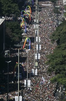 中新網(wǎng)6月7日電 據(jù)外電報(bào)道,巴西城市圣保羅周日(6日)舉行一年一度的同性戀大游行,組織者稱這是世界上規(guī)模最大的此類(lèi)游行。