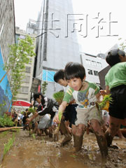 中新網5月30日電 高級品牌店羅列的東京銀座一丁目日前出現了水田。“在銀座種大米2009”活動30日正式拉開帷幕。