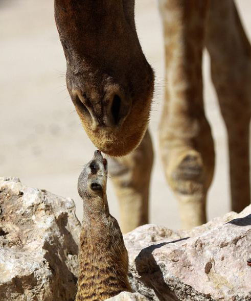 中新網2月22日電 據臺灣“今日新聞”22日援引英媒報道,看過動物星球頻道的《狐獴大宅門》嗎?這里有該頻道沒辦法拍到的畫面──攝影師阿方索帕茲(Alfonso Paz)在葡萄牙里斯本動物園直擊,一只厚臉皮的狐獴(又稱貓鼬),竟主動向長頸鹿索吻!逗趣的一瞬間也被拍了下來。