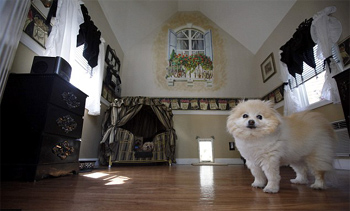 它們的主人、47歲的卡西斯說:“我的狗就是我的生命!彼罃S2萬美元打造了這個(gè)狗窩。卡西斯還表示,接下來她將為這些寵物們添置一臺等離子電視機(jī),“它們喜歡看動(dòng)物世界!”