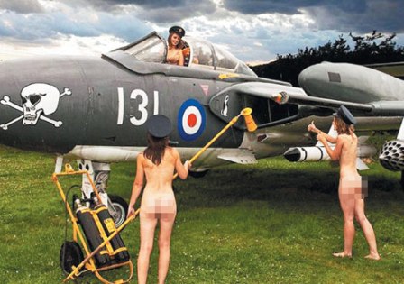 據報道,50位拍攝裸體月歷的志愿者在陸?杖娷娛禄嘏c訓練中心展現火辣身材,但是重點部位都有軍用設備或武器巧妙遮掩。