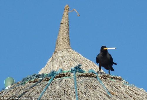 報道稱,茱迪和埃利斯在馬爾代夫度假時意外發現一只烏鴉竟叼著一包香煙從他們頭頂飛過,并降落在臨近的草屋屋頂上。