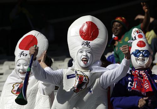 不過,除了這些美女,世界杯賽場的女球迷也以一些令人匪夷所思的造型出現在公眾面前。報道指出,以日本女球迷為例,全身“裹粽子”般包得緊緊地,如同將相撲的服裝穿在身上,令人看不懂她們追求的效果是什么。看上去,她們的造型像是“安全套”,又像是保齡球瓶,和足球賽仿佛搭不上調。不過,唯一能確定的是,她們在冬天的南非應該不會受涼。