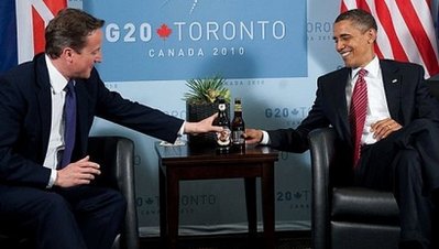 這個月中旬,奧巴馬在與卡梅倫通電話討論國際大事的同時,曾為英國與美國的足球隊在世界杯比賽打賭,結果兩隊比賽打成平手,沒有輸贏,不過,兩人周末在加拿大開會碰面時,還是互請對方喝啤酒,聊表致意。