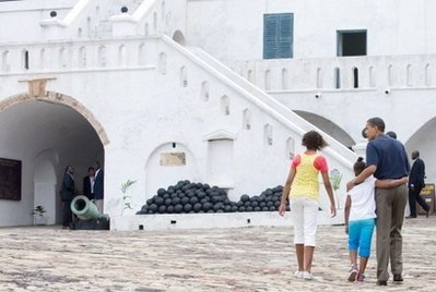 中新網7月12日電 綜合報道,美國總統奧巴馬以參觀前奴隸交易中心結束了他對西非國家加納的訪問,曾有很多非洲奴隸從這個交易中心被運往美國。奧巴馬一家星期六參觀了海岸角城堡,英國在17世紀把這個緊靠海邊的堡壘改為奴隸交易所。