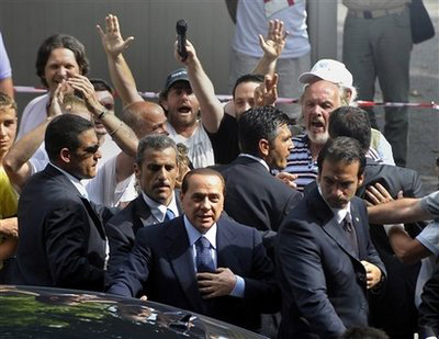 事實上,早在6月2日出席在羅馬舉行的意大利共和國成立日紀念活動時,貝盧斯科尼就遭到了一陣起哄的口哨聲。自那以后,只要是出現(xiàn)在公開場所,貝盧斯科尼總會聽到民眾的起哄。