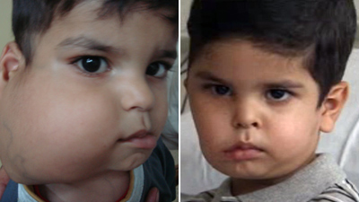 賽義夫此前飽受病痛折磨,一個甜瓜一樣大小、足足12磅的巨大腫瘤在他面部和頸項(xiàng)處瘋狂生長,導(dǎo)致他面部神經(jīng)癱瘓,呼吸受到嚴(yán)重壓迫。此次手術(shù)旨在移除這個可怕的怪物。賽義夫的頜面外科醫(yī)生格雷厄姆•史密斯稱,腫瘤“在兩個月內(nèi)持續(xù)惡化,短短幾個月之內(nèi)就能導(dǎo)致這孩子死亡。”