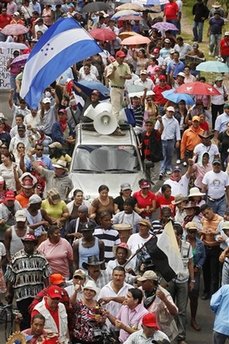 本周一,塞拉亞意圖回國復職,大批支持者前往機場迎接和阻擋的軍警爆發沖突,19歲的青年曼西亞被軍人射殺,在曼西亞家屬的請求下,藏匿了十天的卡絲特蘿決定出面。