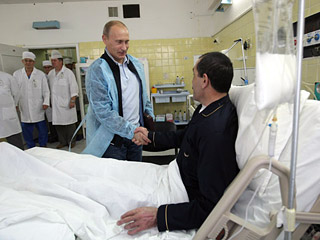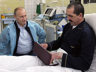 據俄羅斯新聞網報道,7月30日俄羅斯總理普京前往莫斯科維什涅夫斯基外科醫(yī)學研究所探望一個多月前遇刺后在此療傷的印古什自治共和國總統(tǒng)葉夫庫羅夫,并且贈送一把短劍祝賀當日滿46周歲的他生日快樂。