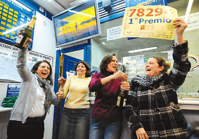 西班牙“肥仔”與其它巨額彩票制度不同,中獎人數較多,齊齊瓜分獎金。國家彩券部門表示,“肥仔”彩票全國銷售金額估計有27億歐元,較去年下跌近3%。