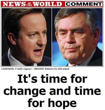 該報說,經過深思熟慮,《世界新聞報》相信卡梅倫和他的保守黨應當被給予執政的機會,“眼前,他們(保守黨)寄托著我們對光明、合理、安全和更有榮譽的未來。”