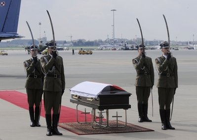 在機場至總統府的道路兩旁,民眾手持鮮花,默默佇立,目送總統靈柩經過。其后卡欽斯基遺體被運往華沙總統府的禱告室內,將在那里擺放7天,以供親屬及民眾瞻仰。7天之后,波蘭將為這位在空難中不幸罹難的總統舉行葬禮。