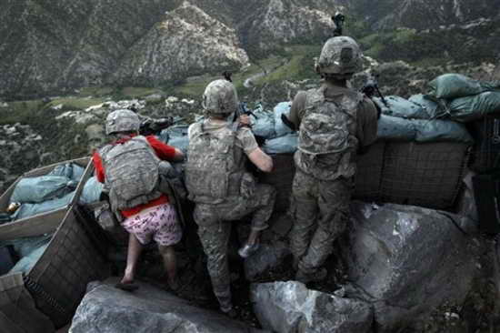 美聯(lián)社的一名攝影記者抓拍的一張照片顯示,19歲的陸軍專業(yè)軍士扎查里伊-波伊德在位于阿富汗庫納爾省科里加爾山谷的雷斯特雷波火力基地內(nèi)進(jìn)入防御陣地,基地當(dāng)時遭到了塔利班的火力射擊。他當(dāng)時穿著一件四角內(nèi)褲,內(nèi)褲上印著彩紅色的“我愛紐約”字樣!都~約時報》12日在其頭版刊登了這張照片。