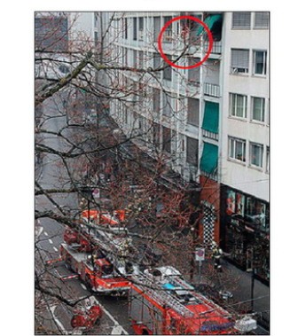 瑞士一家妓院發生火災,圈中為被困的全裸男子