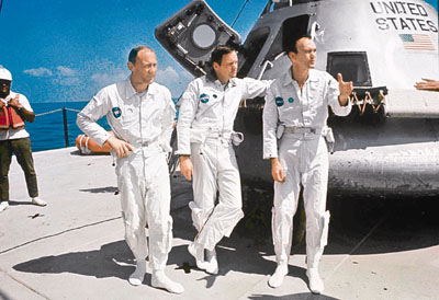 據香港《文匯報》報道,1969年7月,3名宇航員阿姆斯特朗、科林斯和奧爾德林,擠在“阿波羅11號”里展開他們歷史性的8天旅程。此次紀念登月40周年,周日3人終于有機會再一同出現在公眾面前,并在華盛頓的史密森學會國家航空航天博物館發表演講,一起談論太空歷史。這或許將是3位年屆8旬的老人,最后一次集體亮相。