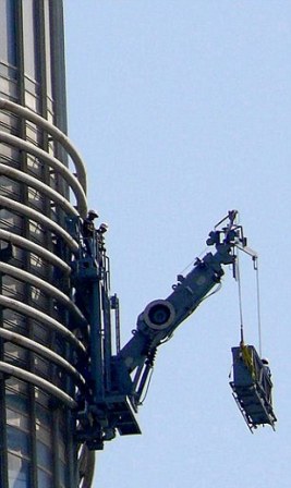 據(jù)英國《每日郵報(bào)》6日報(bào)道,一家名為Cox Gomyl的澳大利亞清潔公司負(fù)責(zé)為這個(gè)世界最高塔擦洗窗戶,保持它時(shí)時(shí)明亮干凈。該公司總經(jīng)理哈丁(Dale Harding)表示,為了方便工人在高塔上下移動(dòng),特地耗資500萬英鎊設(shè)計(jì)、建造和安裝了一種特殊的高科技設(shè)備,即玻璃清洗傳送帶,由一條條沿著塔身鍛造的可伸縮軌道以及上面安裝的承重平臺(tái)組成,工人可以在上面安全地作業(yè)。