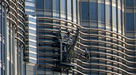 中新網(wǎng)1月6日電 被一根繩子吊在窗外,冒著生命危險(xiǎn)為摩天大樓擦洗窗戶的擦窗工人可謂是一份需要勇氣的職業(yè),而又有誰能夠想象為“世界第一高塔”迪拜哈利法塔擦洗窗戶的工人該是多么“偉大和勇敢”。