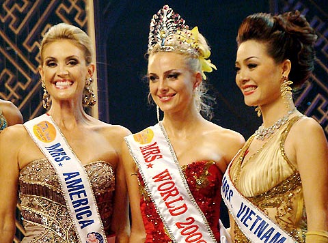 首屆“世界夫人”選美大賽在1985年舉辦。去年的“世界夫人”稱(chēng)號(hào)由烏克蘭夫人納塔利婭·什馬連科娃摘得。今年她特地飛抵越南,為自己的繼任者戴上后冠。