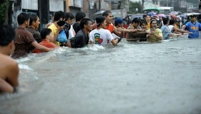 26日,襲擊菲律賓首都馬尼拉及其周邊地區的暴雨持續了近9個小時,至少有一個城鎮已完全被洪水淹沒。