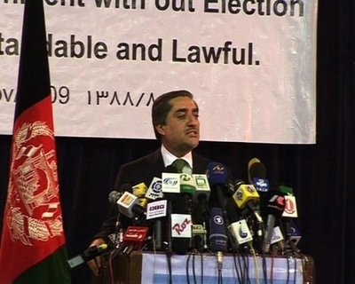 阿卜杜拉當(dāng)天在喀布爾舉行的新聞發(fā)布會(huì)上說:“我不會(huì)參加11月7日的選舉,因?yàn)椴豢赡芘e行透明的選舉! 阿卜杜拉告訴自己的支持者,他在“廣泛征求民眾意見”后作出這一“艱難的決定”。阿卜杜拉還表示,他不相信在不撤換選舉委員會(huì)負(fù)責(zé)人的情況下能夠舉行一場(chǎng)自由和公平的選舉,因?yàn)樵撐瘑T會(huì)對(duì)第一輪選舉中的舞弊行為負(fù)有責(zé)任。但當(dāng)被問及是否呼吁抵制第二輪選舉時(shí),阿卜杜拉回答道:“我沒有發(fā)出那個(gè)號(hào)召。”