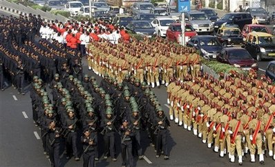 中新網11月26日電 綜合外電報道,25日,印度警察列隊走過孟買幾處標志性建筑,并向公眾展示了新式裝甲車和武器,以紀念孟買恐怖襲擊事件一周年。