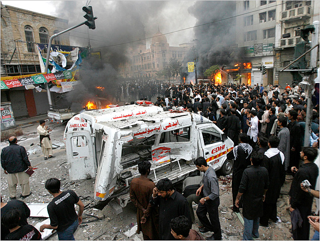 中新網12月29日電 巴基斯坦最大城市卡拉奇市當地時間28日下午發生自殺式爆炸襲擊。據美國《紐約時報》29日最新報道,死亡人數已上升到至少40人,另造成100多人受傷。