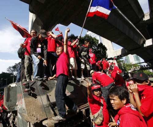 泰國最高法院最近裁定充公他信逾半資產,惹來他信的支持者強烈反對。反獨裁民主聯盟(UDD,俗稱“紅衫軍”)計劃動員百萬民眾,星期五開始在曼谷周邊地區集合,之后再在曼谷市內多處,包括皇家田廣場和國會大樓前,舉行百萬人反政府集會和示威。紅衫軍領袖聲言集會會以和平方式進行,目標是三日內迫使總理阿披實解散國會,重新大選。他們更表示,剛頒布的國內安全法不會阻止他們的活動。
