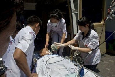 中新網5月1日電 據“中央社”報道,泰國反政府紅衫軍29日闖入朱拉醫院搜查,以為軍人鎮守大樓準備驅離行動,紅衫軍領袖30日致歉并清出部分路障供救護車與病人進出,但已有逾1000名病人轉院。
