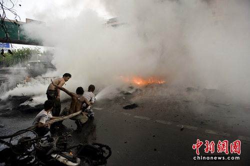 5月13日晚間,泰軍隊封鎖了“紅衫軍”在曼谷中心商業區拉差巴頌路口的集會區域,流血沖突爆發,傷亡人數不斷上升,到目前為止,已知有35人在這3天的沖突當中死亡。