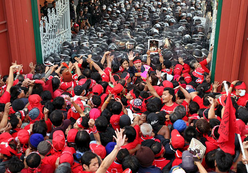 他信贏得了合法的選舉,但他卻在軍隊和法庭的壓力下不得不遠離政權。泰國下議院的選舉將支持皇權的阿披實政府推上了權力之巔。