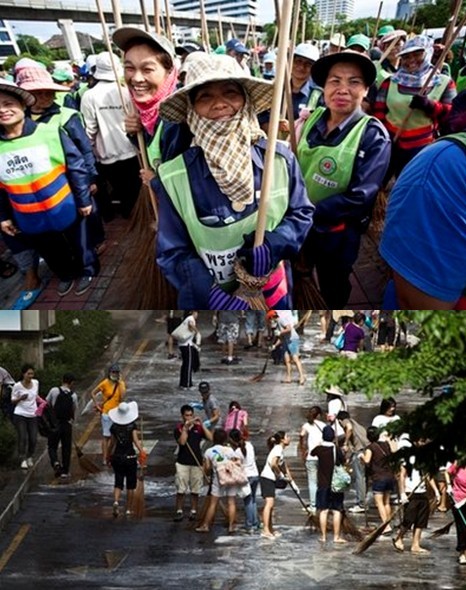 據(jù)報(bào)道,曼谷當(dāng)局估計(jì),23日當(dāng)天大約有4000名志愿者自發(fā)走上街頭,參加對(duì)街道、市容的大整頓、大清洗活動(dòng)。這比原本預(yù)計(jì)的3000人要多。
