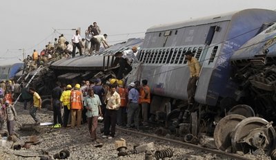 當(dāng)?shù)貢r(shí)間28日凌晨1時(shí)30分,在印度東部西孟加拉邦西米德納布爾附近,一輛高速行駛的旅客列車(chē)遭襲致13節(jié)車(chē)廂脫軌,其中3節(jié)車(chē)廂又與對(duì)面駛來(lái)的貨運(yùn)列車(chē)相撞。目前為止,事故至少造成71人死亡。