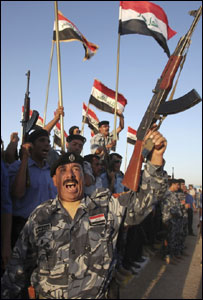 中新網6月30日電 據英國廣播公司報道,29日,伊拉克政府軍士兵比預定交接時間提前一天開始慶祝美國軍隊正式撤出巴格達。