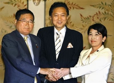 三黨正式達成協(xié)議后,鳩山邀請社民黨黨首福島瑞穗、國民新黨代表龜井靜香入閣。除已經(jīng)內(nèi)定的主要內(nèi)閣成員外,內(nèi)閣其他成員的人選也將于本周內(nèi)相繼確定。