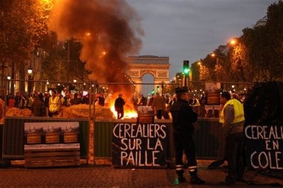 但他的講話并未阻止全國抗議活動的進行。在巴黎,幾十位農(nóng)民在香榭麗舍大道Fouquet餐館外燃燒輪胎等。2007年法國總統(tǒng)薩科齊正是在該餐館與其富人朋友們慶祝了大選的勝利。