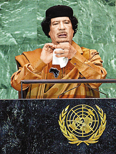 唐娜報道,據英國《泰晤士報》9月26日報道,利比亞領導人卡扎菲日前在聯合國大會發表演講,這是他執政40年來首次在聯大會議上發言。卡扎菲喋喋不休地講了100分鐘,為他擔任口譯的人員幾乎崩潰,以致于當場失態地大聲抱怨。