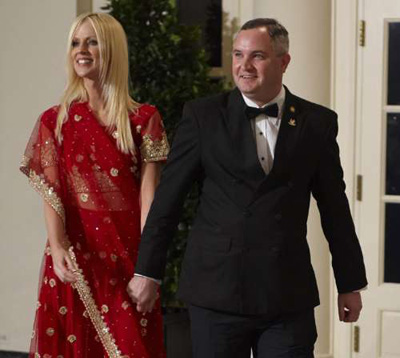 不過,薩拉西夫婦衣著筆挺:男士穿著黑色的晚禮服,女士一襲紅色的沙麗,而且神態(tài)從容。也許是優(yōu)雅的外表,使他們不僅通過檢查進(jìn)入白宮,而且還和其它來賓、包括美國副總統(tǒng)拜登、白宮幕僚長伊曼紐爾和華盛頓市長芬蒂在內(nèi)的人交談、合影。