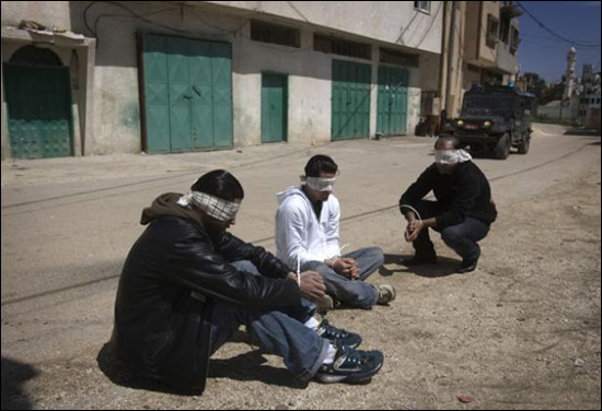 這兩名士兵都隸屬于獅崽步兵突擊旅。他們稱,自己曾目擊了3月26日,數(shù)百名以軍士兵在一個名為哈里斯的小村子中的搜索行動。士兵甲說,大約150名巴勒斯坦人,最小的只有14歲,被以軍士兵捆綁起來,戴上眼罩,然后關(guān)押在村子的學(xué)校中,從上午三點(diǎn)一直到下午三點(diǎn)。他說,以軍士兵這樣做是為了防止村子中的年輕人向附近的公路扔石頭。顯然,被拘押的大多數(shù)人都沒有反抗行為,以軍士兵只是為了收集更多情報。